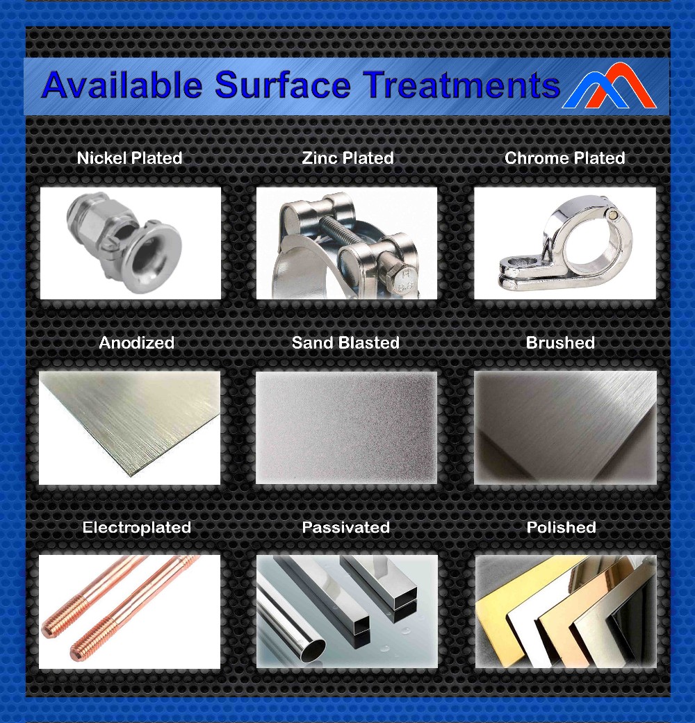 A: Powder coating, polishing, zinc/nickel/chrome plating, painting, anodizing, hot dip galvanizing, sandblasting, etc.