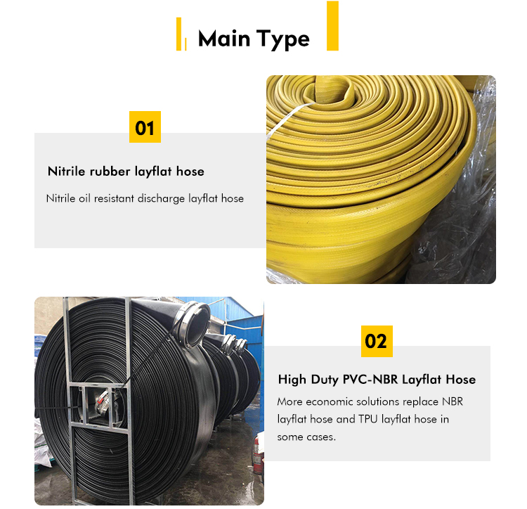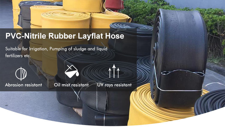 | product name: | PVC-Nitrile Flat Hose | Dimensions in inches: | 3/4" - 12" |