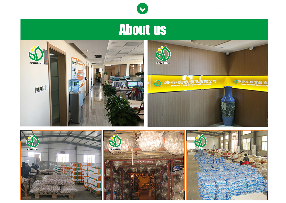 Established in 2005, Jining Fendoni Food Co., Ltd. is a professional garlic producer and exporter. The factory is located in Jinxing County, Jining City, Shandong Province, China (the hometown of garlic in China). We have extensive experience in growing, harvesting, selecting, processing, packing, cold storage, shipping and exporting. Therefore, we are able to provide our customers with the best quality garlic, competitive price, fast delivery and best service.