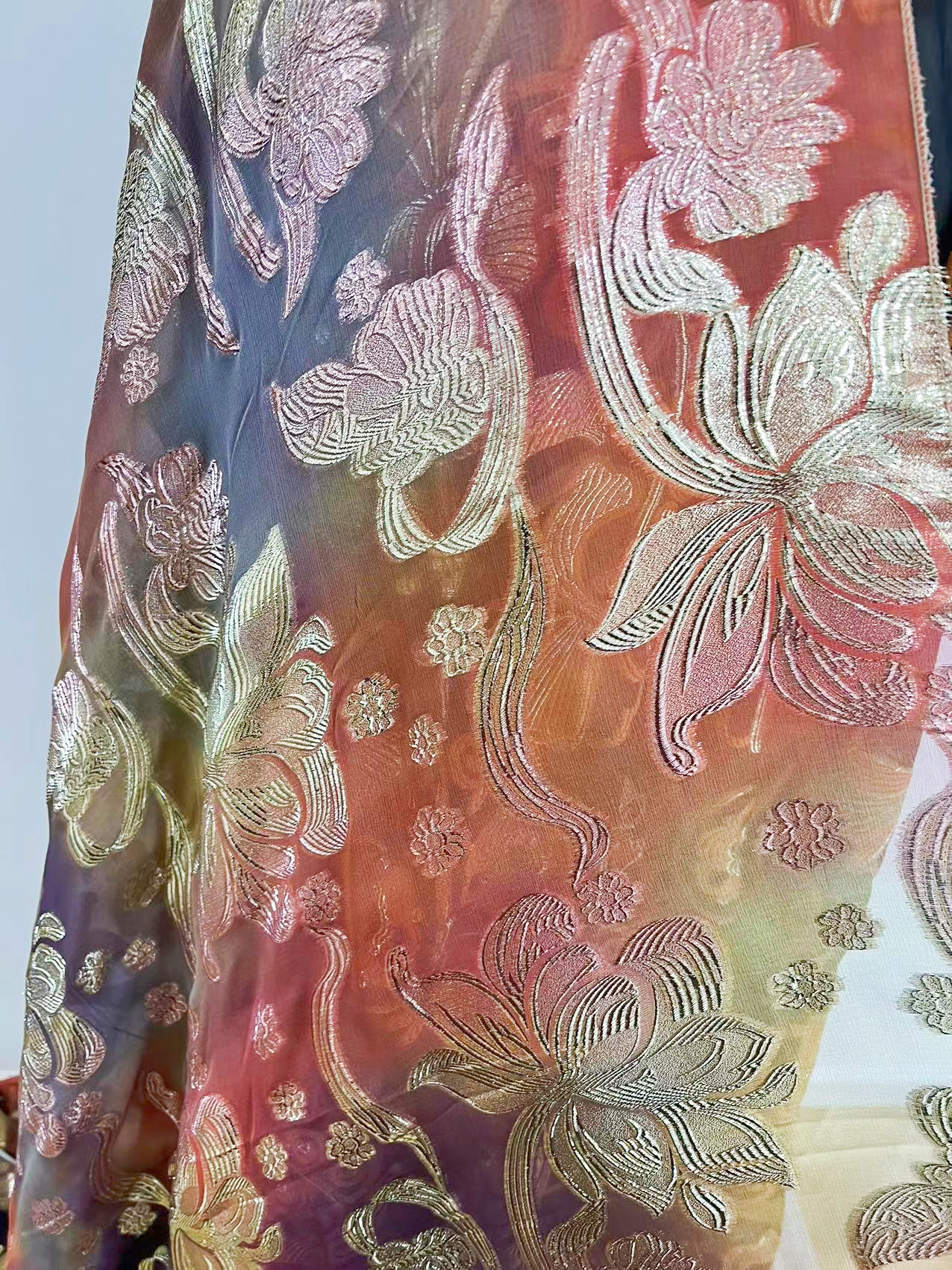 High Quality Soft Sheer Unique Scarf Fabric Colorful Metallic Lurex Silk Chiffon Fabric