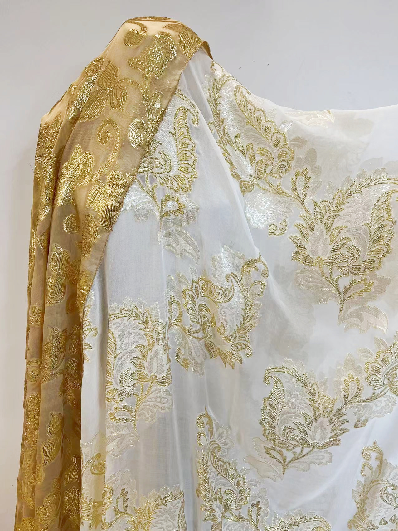 Custom Dyed Lurex Metallic Floral Jacquard Silk Fabric