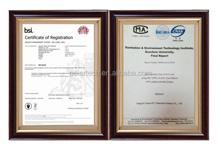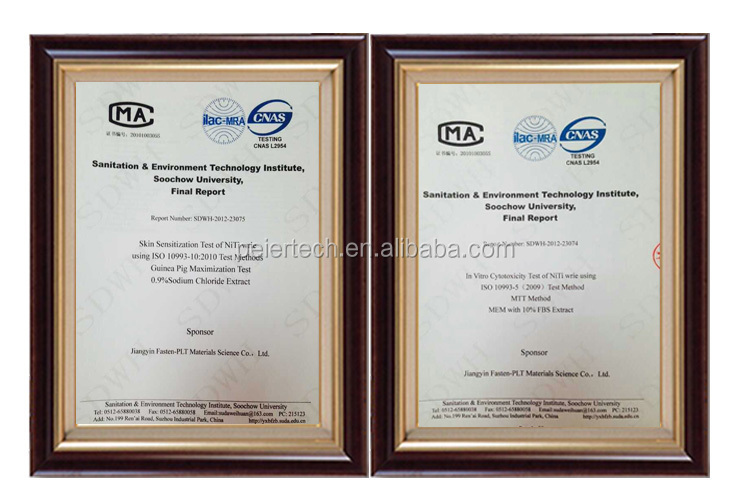 | Certificate: | ISO13485 | grade: | Nitinol |