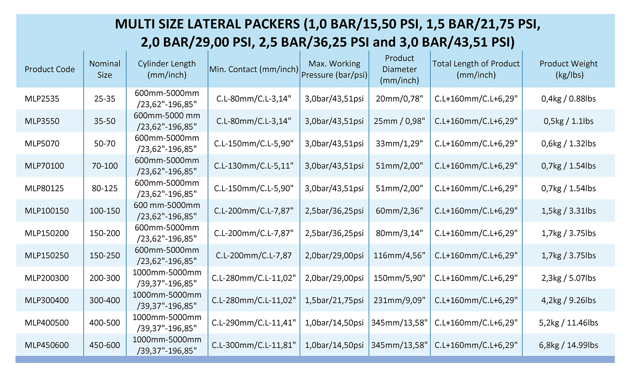 • Used packer lengths ranging from 600 mm (23,62") to 5000 mm (196,85").
