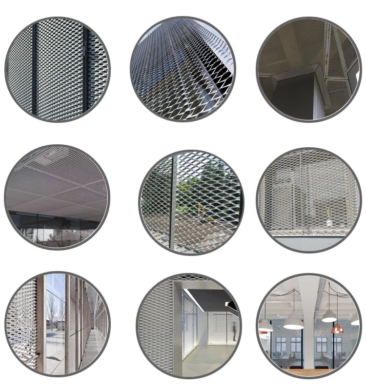 Aluminum expansion mesh is widely used in wall decoration, suspended ceiling, karaoke sound barrier, outdoor metal curtain wall, small handicraft manufacturing, pollution area protection, chemical plant, power plant, sewage treatment plant, etc., throughout hundreds of industries.