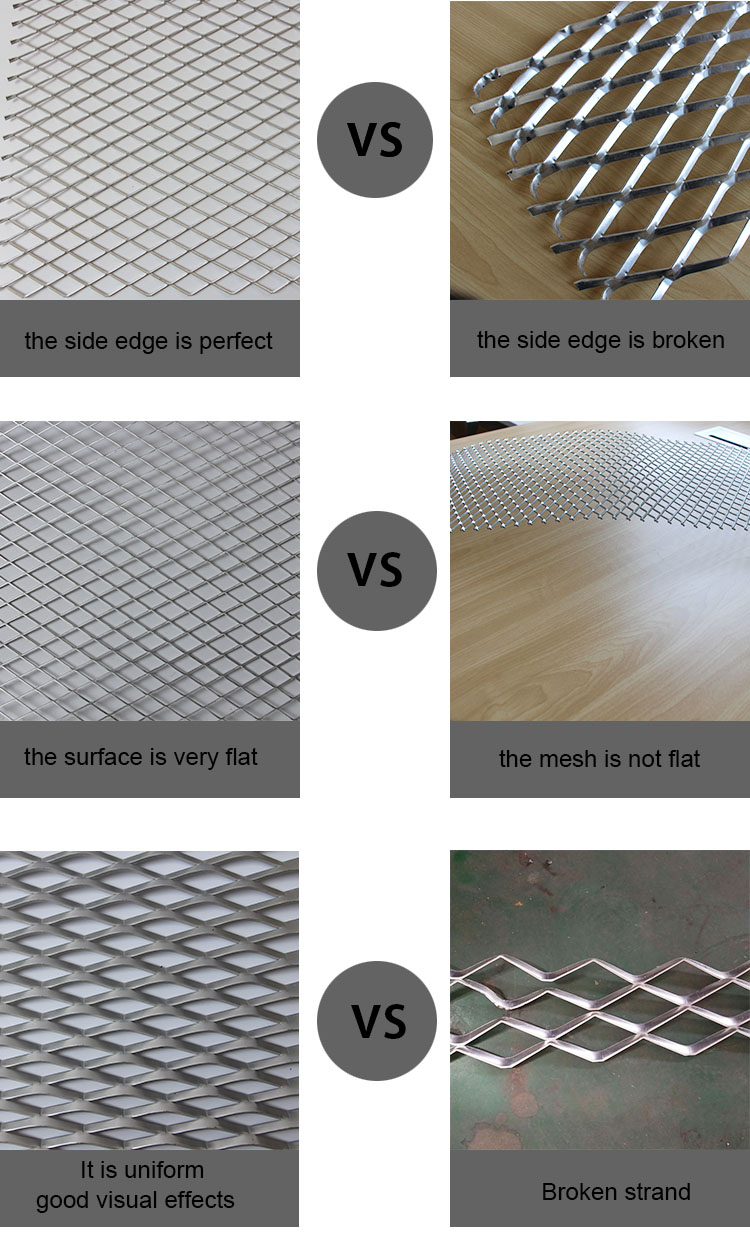 feature: Aluminum expanded mesh is light in weight, rust-proof, aging-resistant, corrosion-resistant, sound-absorbing, ventilated and light-transmitting, and has high strength. It has a very wide range of applications now and in the future.