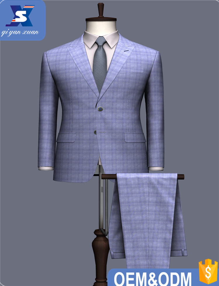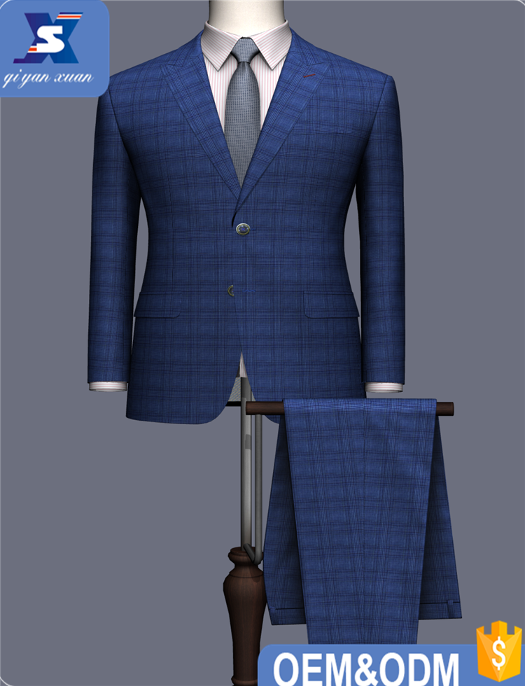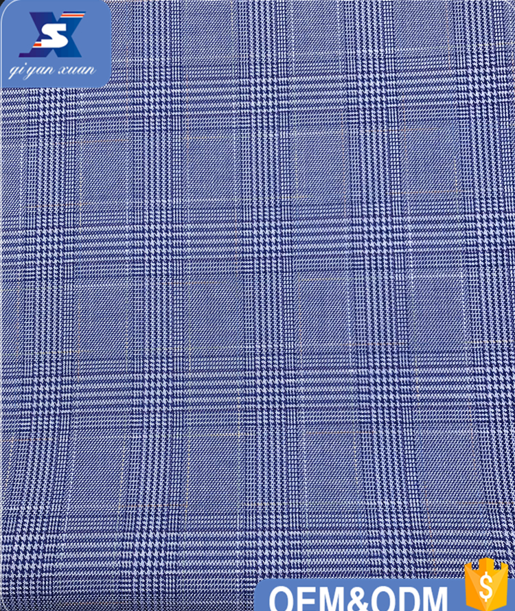 Summer Thin Polyester Viscose TR Blended Fabric Plaid Tweed Indigo Blue Suit Men's Suit Trousers Suit Fabric Clothing