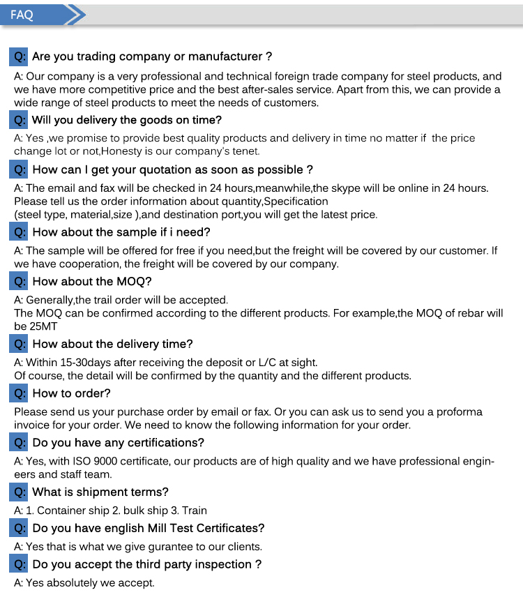 pricing term: CIF CFR FOB factory delivery standard: ASTM/AISI/JIS/EN/DIN tolerant: ±1% usage: building materials structure payment terms: L/C, Western Union, D/P, D/A, T/T, MoneyGram or negotiable bill: According to theoretical weight Payment: Wire transfer 30%+70% delivery time: Within 7 days...... -
