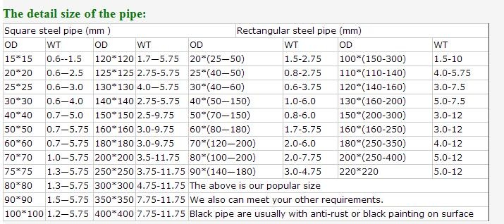 Black Iron/STEEL Pipe/TUBE square and rectangular hollow sections ASTM, JIS standards