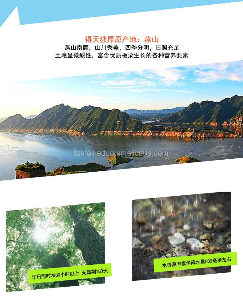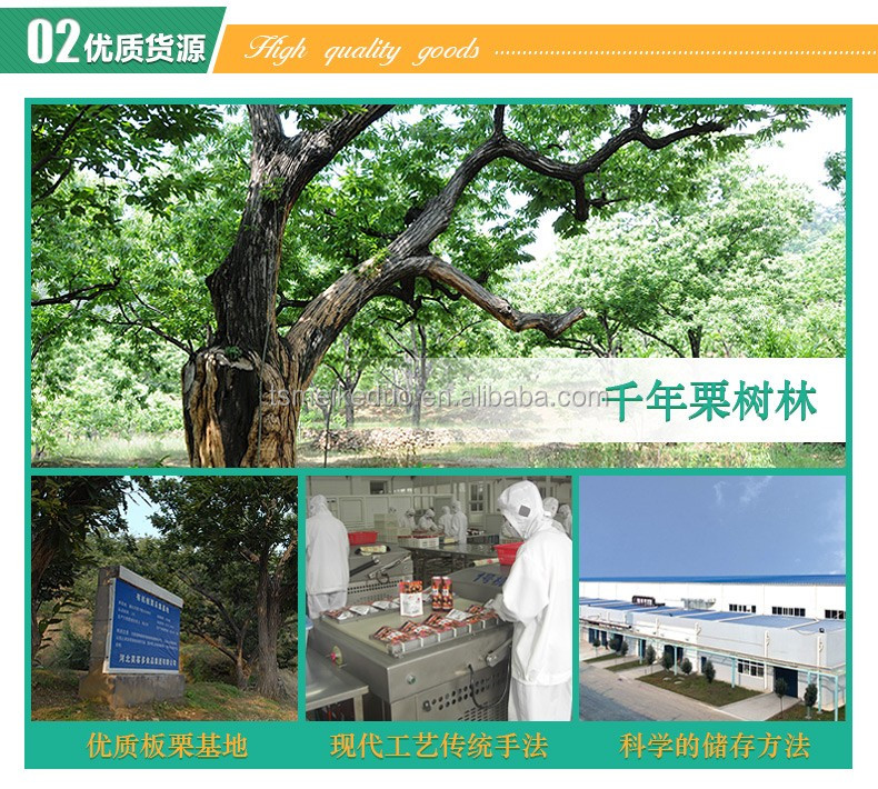 1. Chestnut raw materials: all chestnuts from our own chestnut base, Yanshan chestnut, are the best chestnuts in the world.
