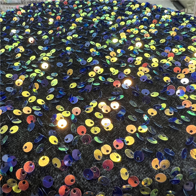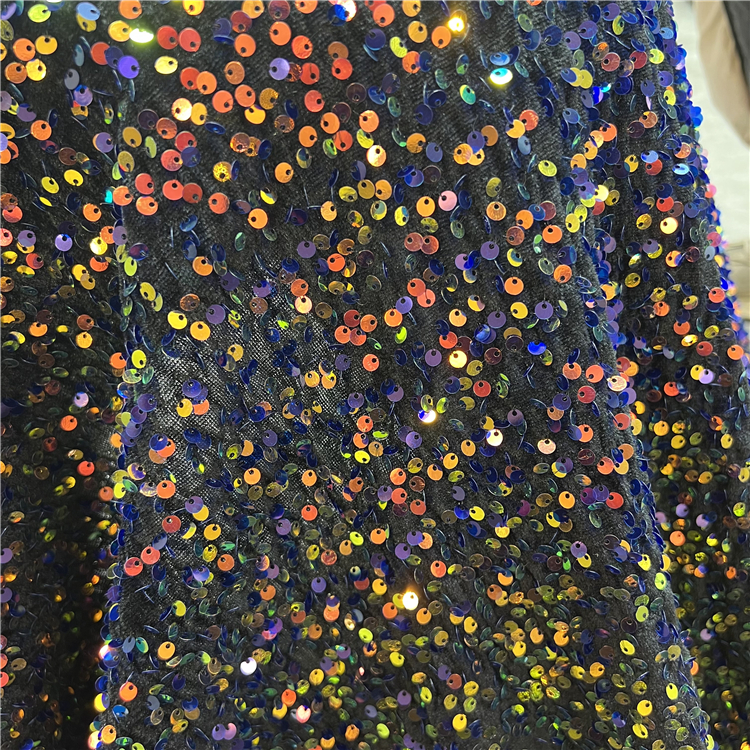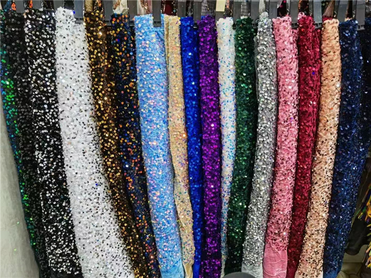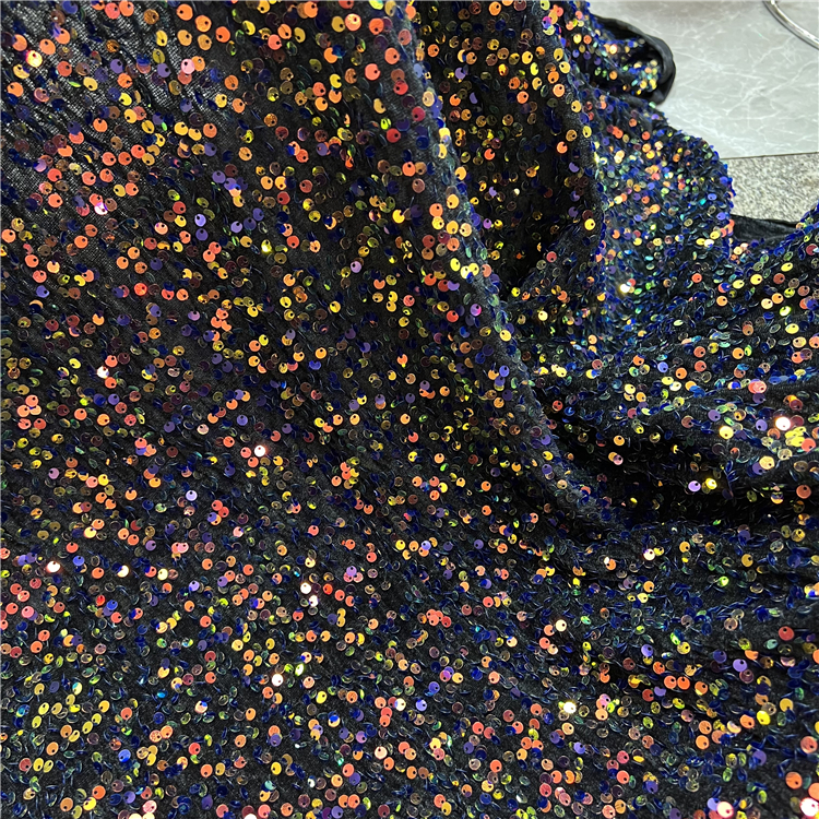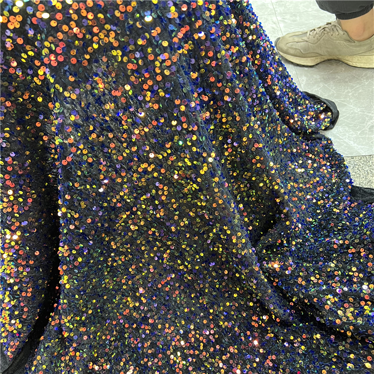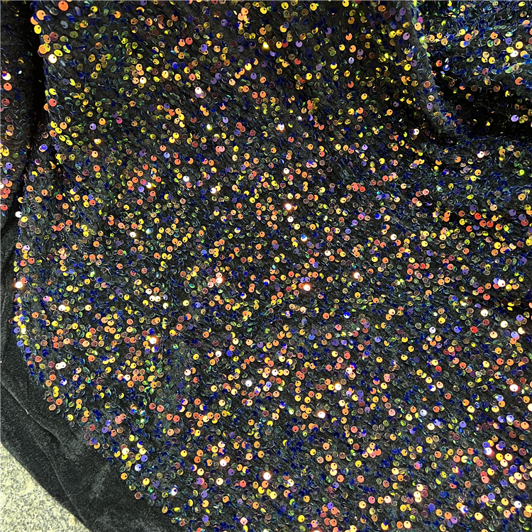 Wholesale elastic thick base fabric glitter sequin embroidery velvet sequin evening dress fabric