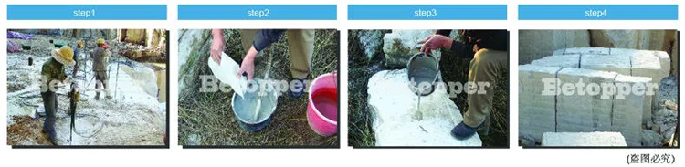 application: stone mining Name: Expanded cement mortar for quarry Key words: expansion mortar CAS number: rock powder Key words: Silent Cracker brand: Stone Cutting Chemicals port: Guangxi Wuzhou Port Package preview: IF: Calcium Oxide Purpose: non-explosive demolition agent EINECS number: silent...... -