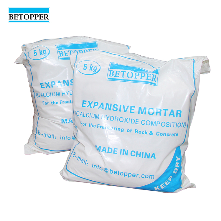 Expansive mortar non-explosive demolition agent is a non-toxic cementitious powder composed of calcined oxides of calcium, silicon and aluminum. The expansion mortar has an astonishing expansion pressure of up to 11,200 tons/square meter when mixed with water. Marble, granite, limestone, plain concrete, reinforced concrete, boulders and ledges shatter overnight with no noise, vibration or flying rocks. Especially, when used in environments where explosives are restricted or where the use of explosives is not permitted.