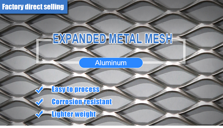 Aluminum Expanded Meshis a rigid piece of metal that is cut and drawn into an open mesh pattern in one operation. It is made of solid aluminum sheet/coil. Traditional grids are formed in a diamond pattern. There are hexagonal, circular, triangular, scaly openings and other patterns.