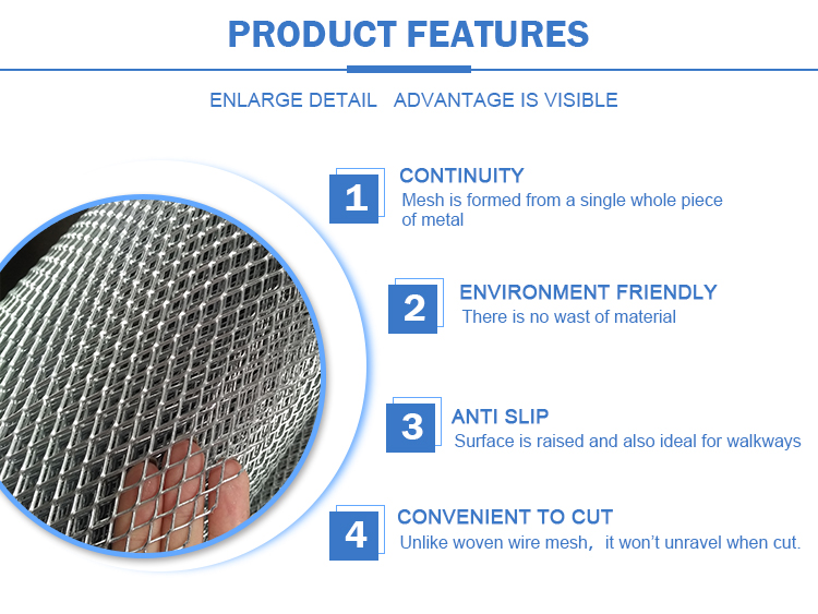 Origin: Hebei china type: Extended grid Advantage: heavy object port: Tianjin Surface treatment: hot dip galvanized Keyword 3: Aluminum mesh payment terms: L/C, Western Union, T/T Grid size: 0.5*1.0mm 1.0*2.0mm 1.25*2.5mm 1.5*2.5mm 1.5*3.0mm Keyword 2: Steel net Supply capacity: 500 pieces per week.... -