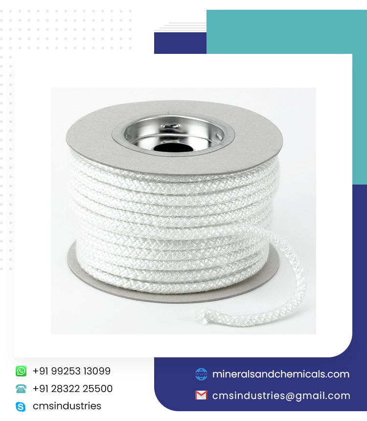 The ceramic fiber rope is reinforced with glass fiber filaments and optional Inconel wire. It can be used for glass kiln sealing, foundry, refinery, power plant, furnace door insulation sealing. Braided ropes are made of ceramic fibers encapsulated in a fiberglass braid or SS steel wire braid for excellent handling strength. CMS INDUSTRIES is a reputed Ceramic Fiber Rope Supplier, Trader and Exporter.