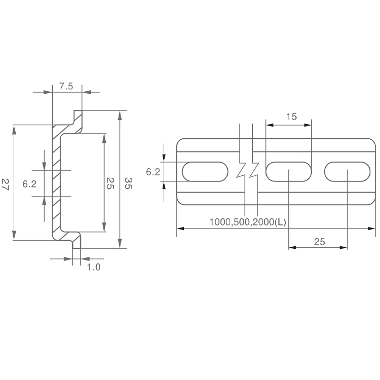 2) The standard length of 35x7.5 DIN Rail is 1m and 2m. Custom lengths are also available.