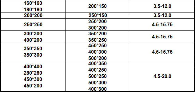 | 16*16 | 0.8-1.5 | 20*40 | 0.8-2.0 |