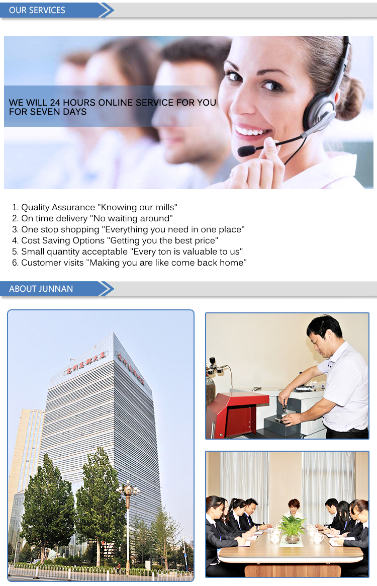 Tangshan Junnan Trading Co., Ltd. is located in Tangshan City, the largest steel manufacturing base in China, with a registered capital of 50 million yuan. It is a steel enterprise mainly engaged in domestic trade and international trade. The management has been in the steel industry for more than 20 years with rich experience in management team and established strong business relationship with our valuable customers and factories.