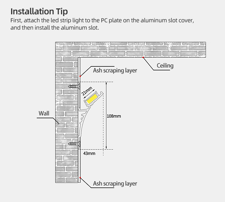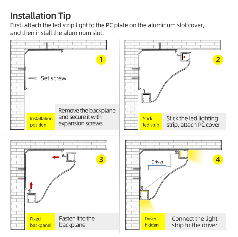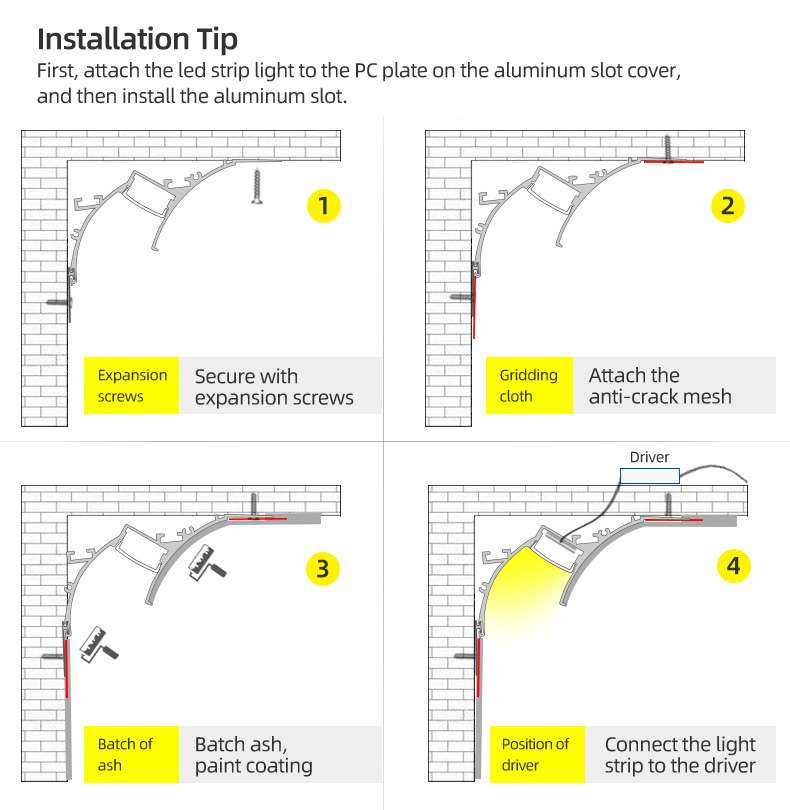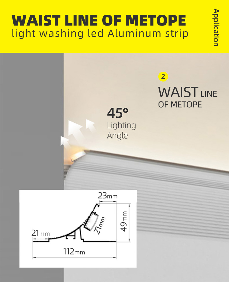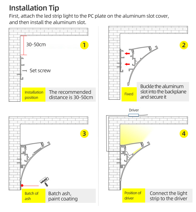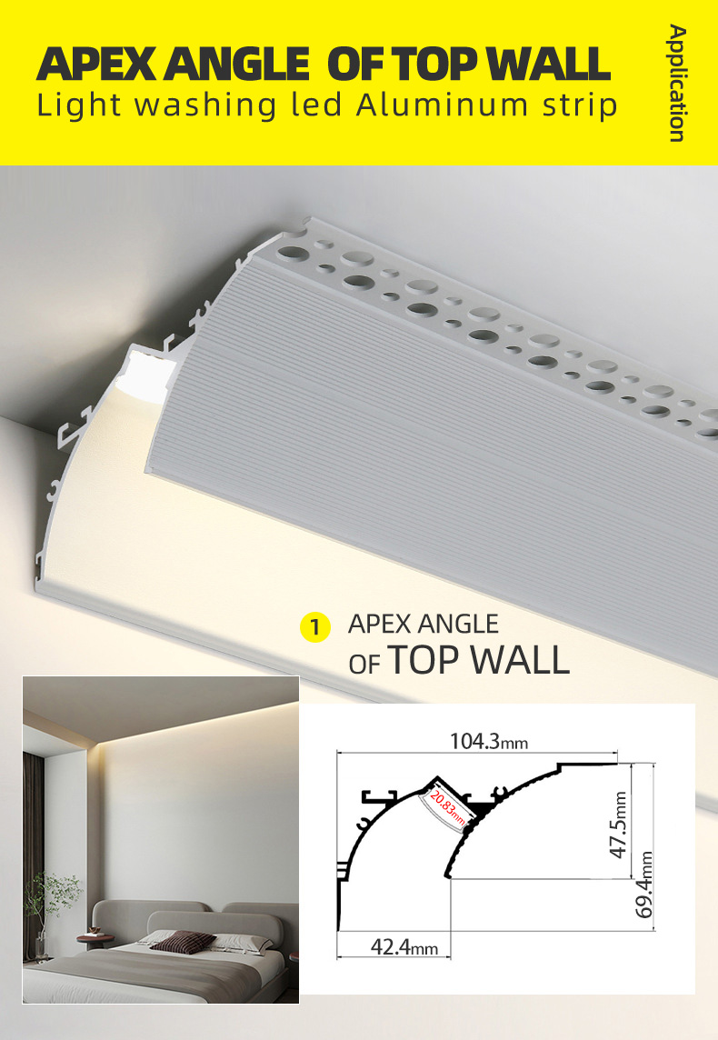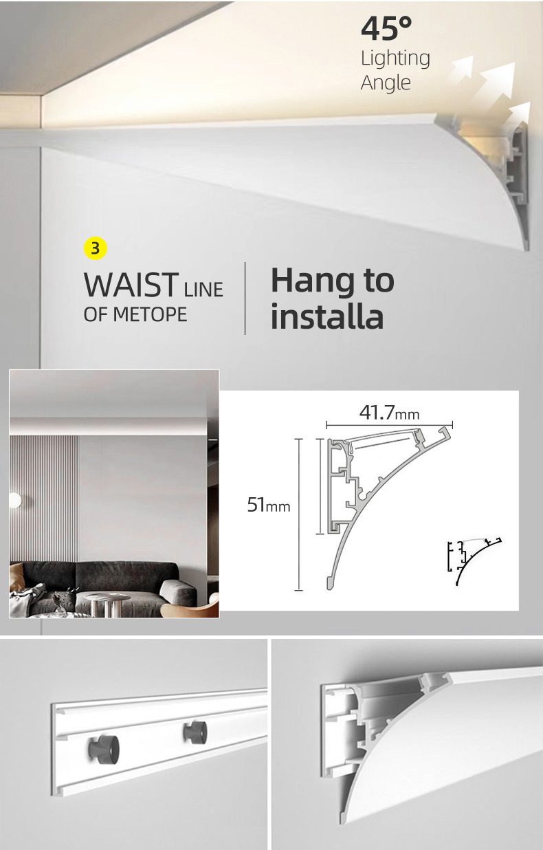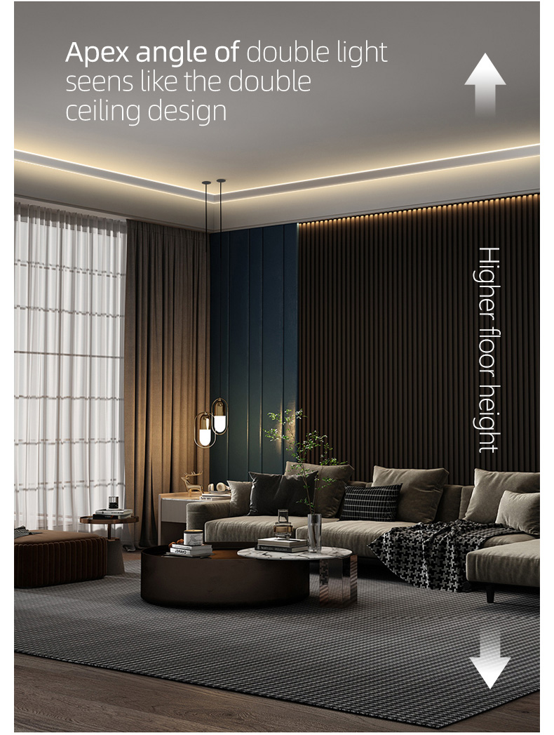 Install aluminum diffuser at the top corner Extruded groove profile without ceiling LED linear aluminum profile lamp washing strip