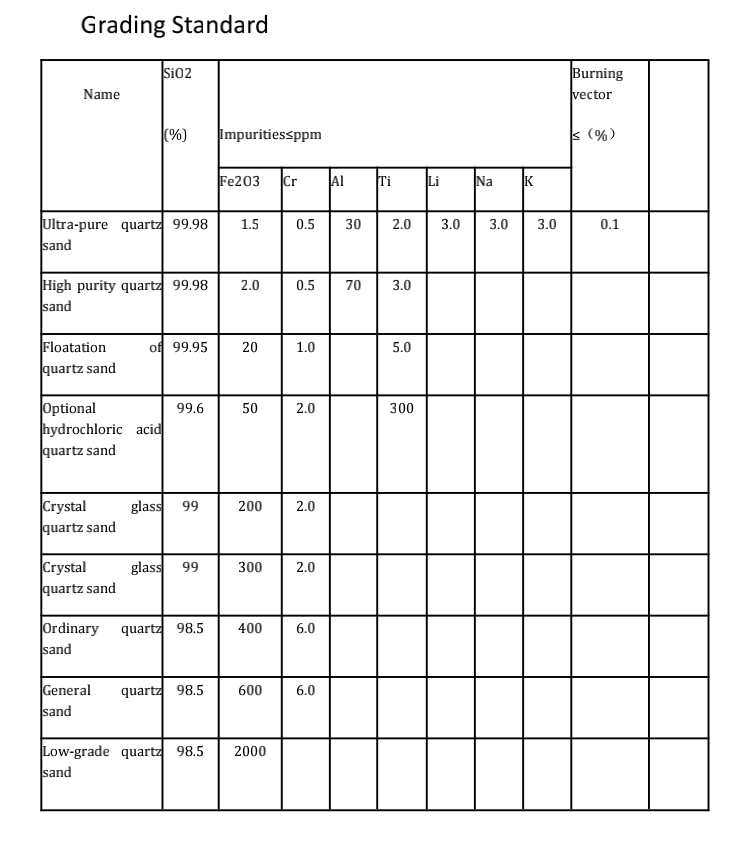 | Name: | Quartz silica sand | CaO content (%): | 0.01% |