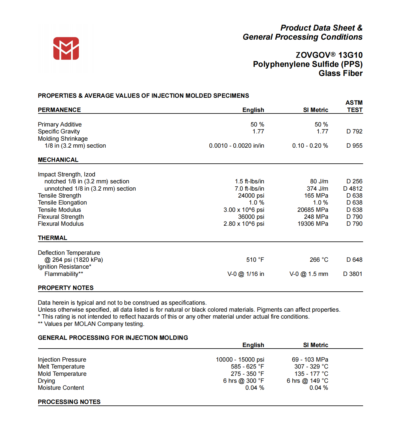 | Material: | Polyphenylene sulfide | model: | PPS ZOVGOV 13G10 |