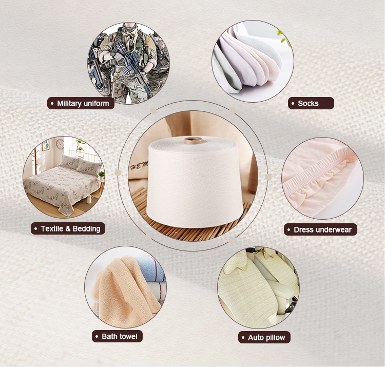 Supply capacity: Annual output 6,000 tons port: Qingdao/Shanghai usage: Knitted and woven feature: Sustainable and recyclable Packaging details: Packaging: carton, 15 tubes/carton, 25KGS/carton Yarn count: 24 nautical miles/1 brand: sunshine Evenness: even Place of origin: Henan, China style: fancy.... -