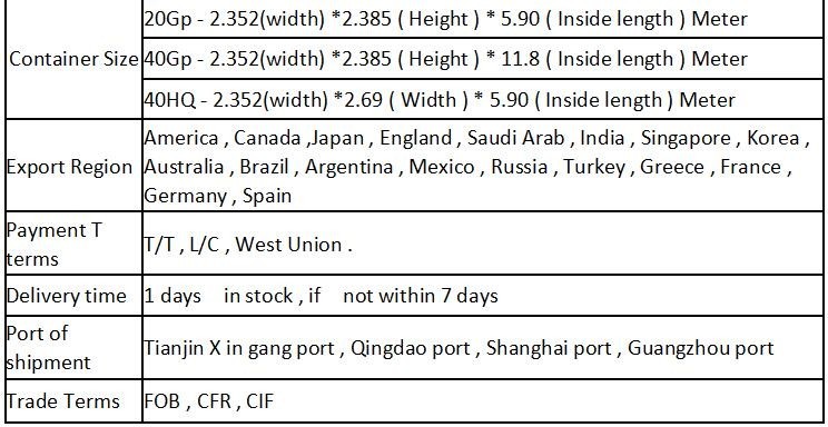 | port: | Tianjin harbor | Supply capacity: | 500,000 tons/year |