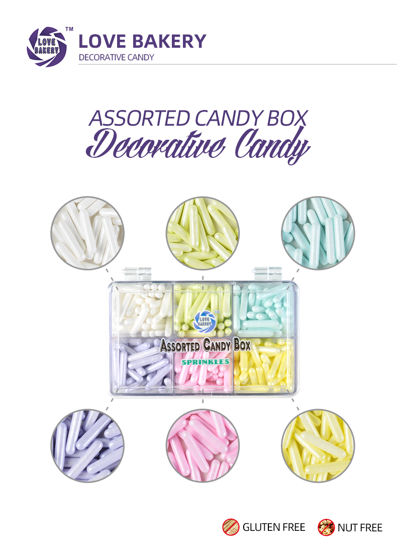 Love Bakery 6 Colors Thick Jimmy Pressed Sugar Sprinkles Cake Topper Party Cupcake Companion