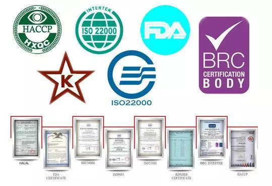 | 5. | freezing | IQF (= Individually Quick Frozen) |