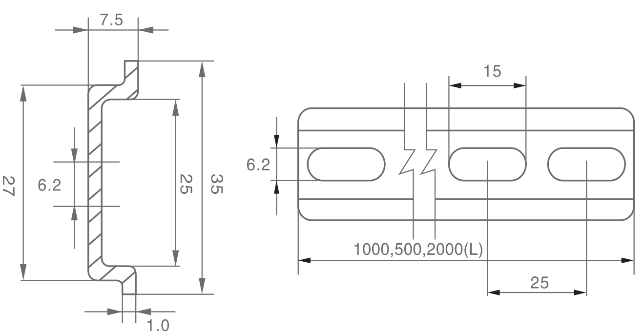 Cabinet Panel Aluminum or Steel TH35-7.5 C45 Slotted Aluminum Mounting