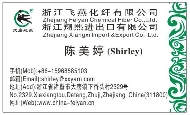 "Feiyan" is a famous brand in China. It owns Zhuji Datang Feiyan Chemical Fiber Booth and Zhejiang Feiyan Chemical Fiber Co., Ltd. and Zhejiang Xiangxi Import and Export Co., Ltd.