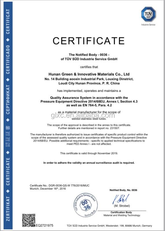 Hunan Green New Material Co., Ltd. is located in Gaoxi Industrial Park, Louxing District, Loudi City, Hunan Province. The main products are seam welded stainless steel pipes, corrugated pipes, and high-efficiency surface pitted pipes.