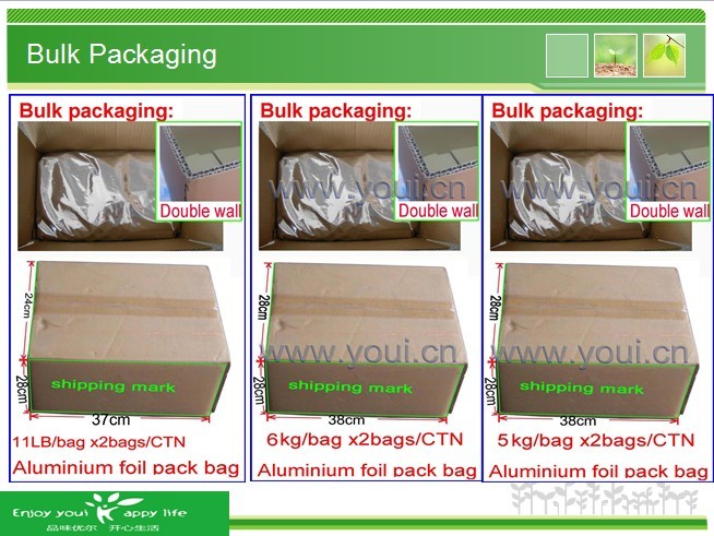 | inner packaging: | 6kg/bag x2bag/CTN, aluminum foil bag |