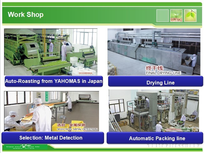 | Main process: | Selection, roasting, seasoning selection and metal detection and packaging are performed in a GMP facility. |