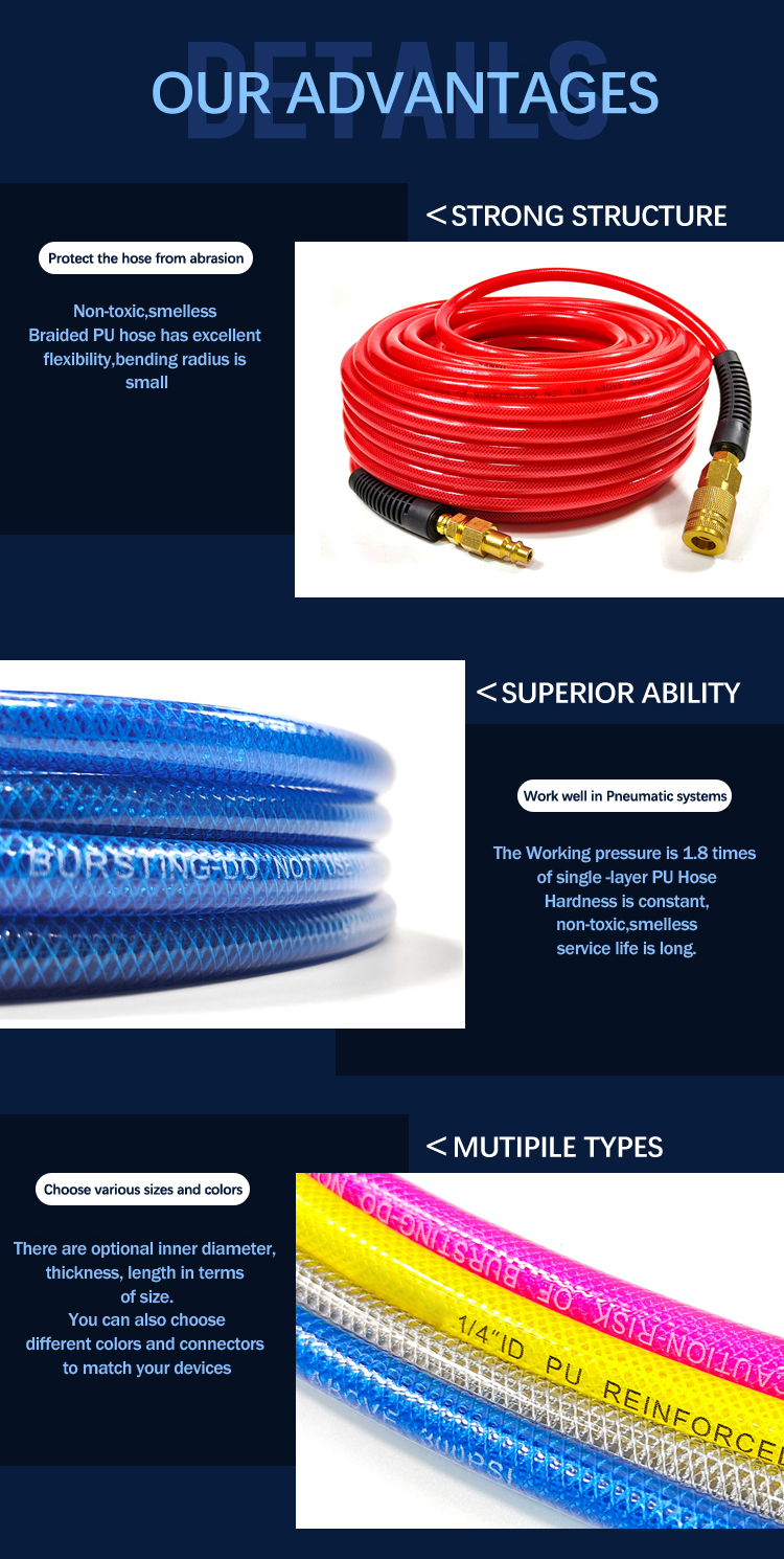 2. The working pressure is 1.8 times that of single-layer PU hose.