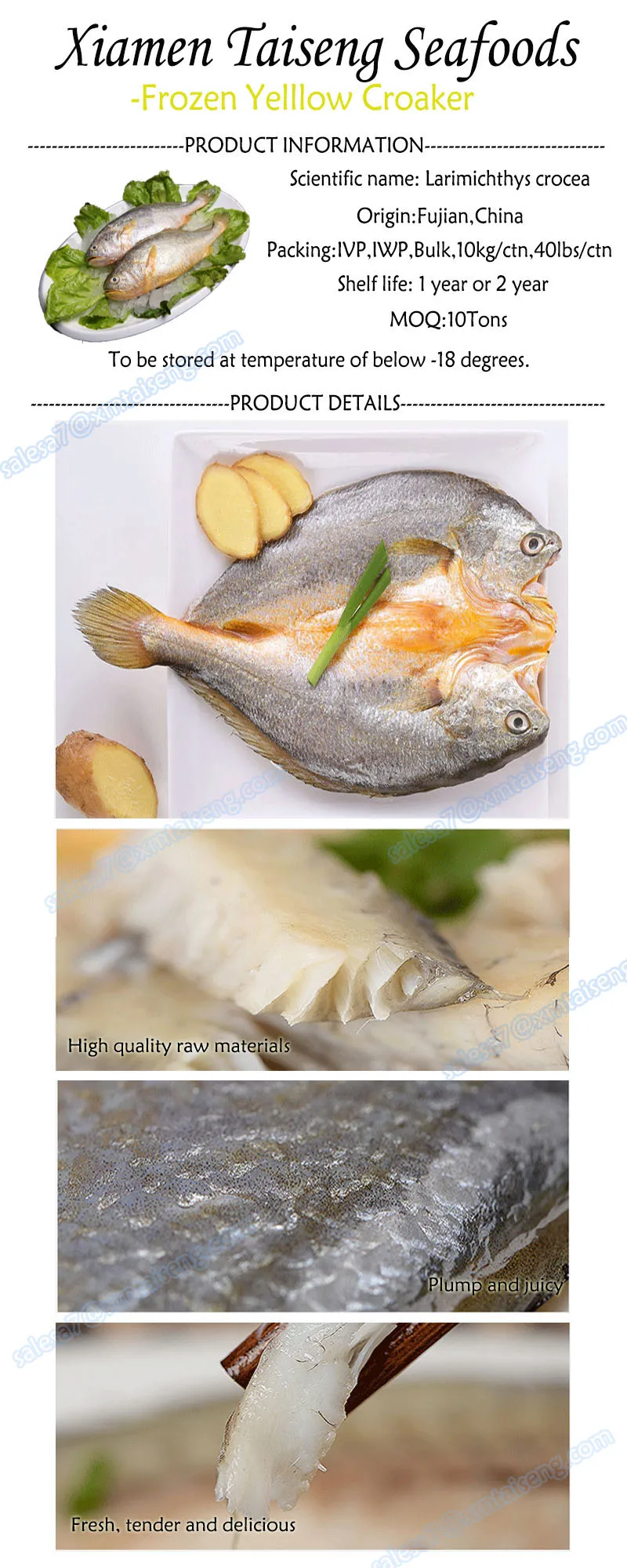 type: yellow croaker Shelf life: 2 years Origin: Fujian Province, China style: freezing Packaging Details: We usually pack frozen fish in individual packs, individual vacuum packs, bulk, 10 kg/case and 10 lbs/case according to customer requirements. part: all Supply capacity: 40 forty-foot...... -