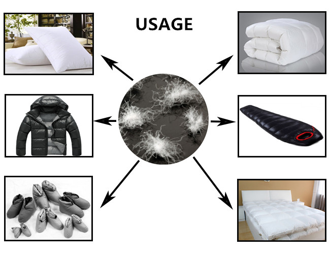 You can use our products mainly down jackets, down pants, down shoes, down quilts, down pillows and so on.