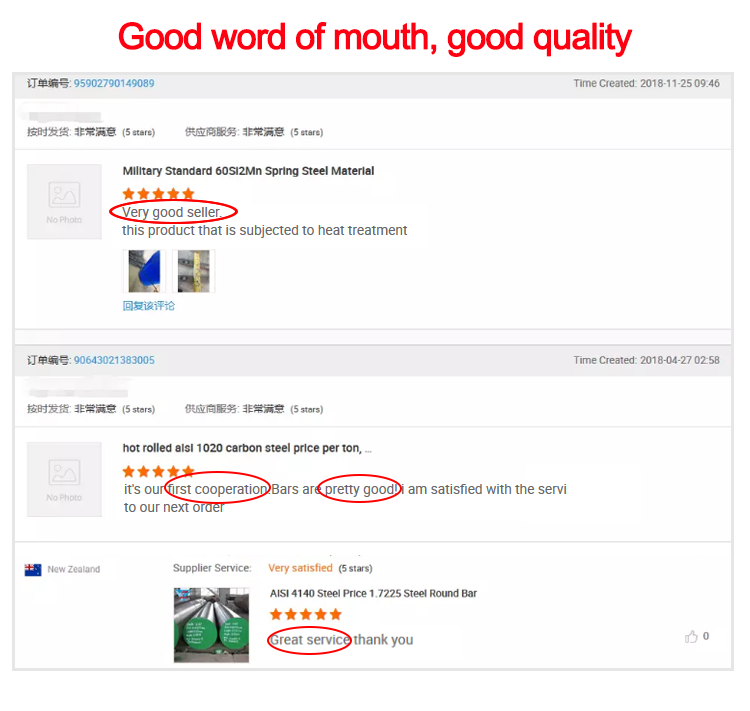 Due to our high quality products, timely delivery, competitive prices and good services, we have won high praise from all our customers.