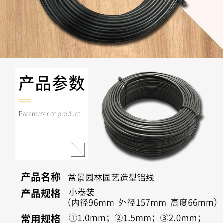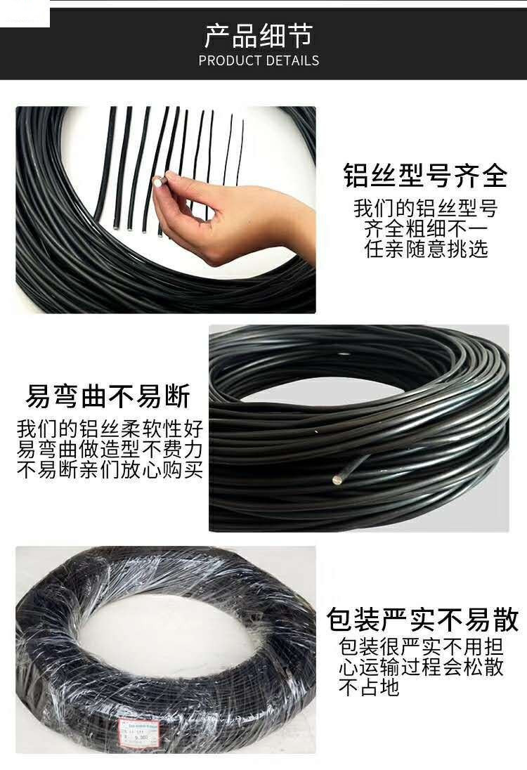 usage: Bonsai Aluminum Wire Keywords: Aluminum wire color: Customized colors Whether alloy: It is alloy Package: Standard seaworthy packaging Delivery time: 8-14 days Origin: Shaanxi, China Minimum Order Quantity: 5 tons application: Bonsai training Processing services: Bending, uncoiling, welding,.... -