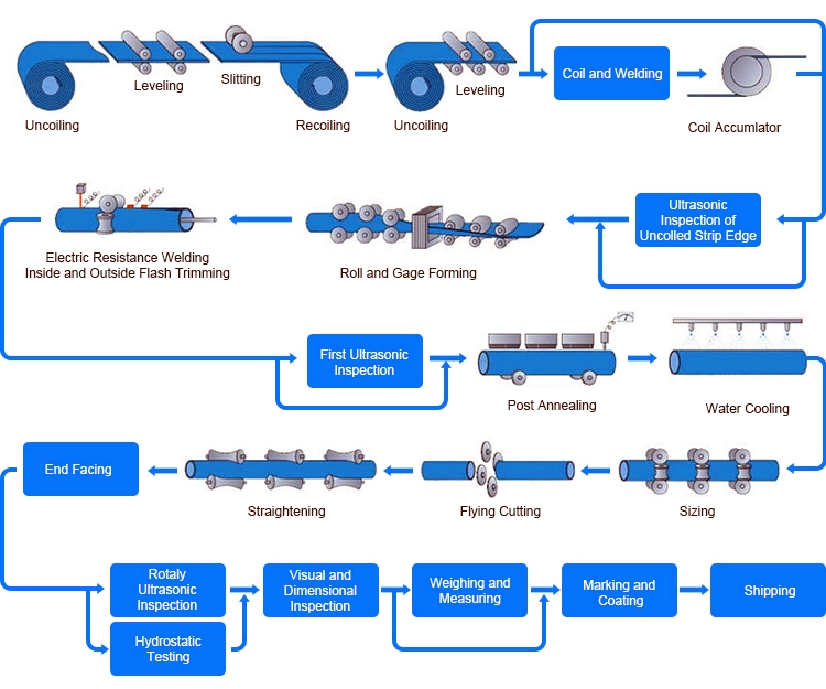 1. All pipes are welded with high frequency. 2. Internal and external welding burrs can be removed. 3. Special designs are available upon request. 4. The tube can be necked and punched. 5. Provide BV or SGS inspection according to customer needs. |