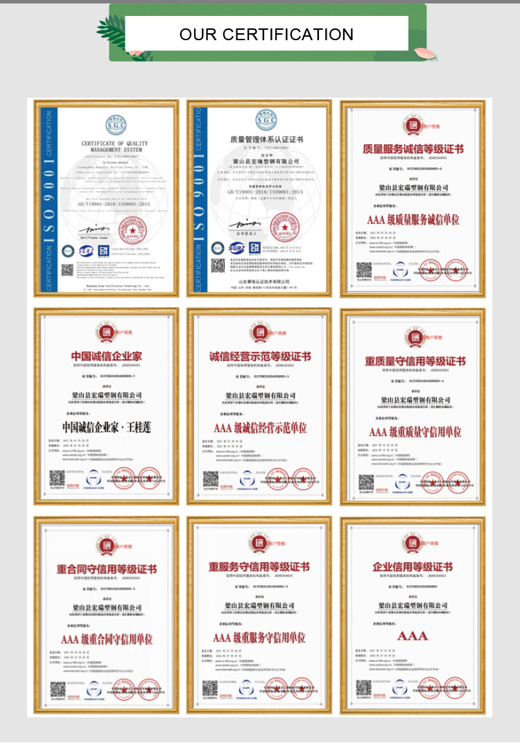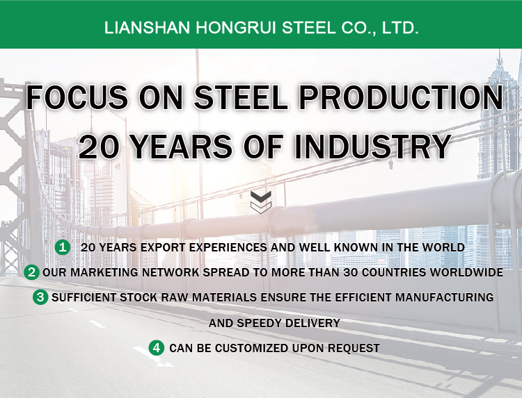 Lianshan Hongrui Steel Co., Ltd. We are a self-operated factory with more than 20 years of industry experience, complete qualifications, and a formal enterprise. We take technology as the primary productive force, guarantee the quality and quantity on time, and ensure the safety of customers' funds.