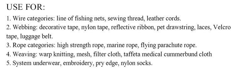 | type: | Nylon 6 Low Elastic Yarn | use: | Hand knitting, knitting, sewing, weaving |