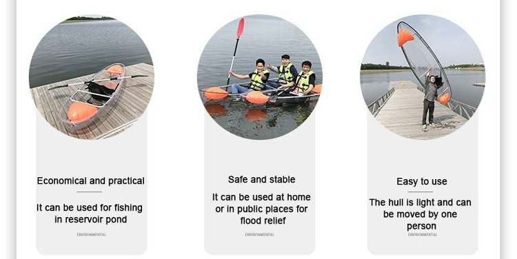 3. The plastic boat adopts a standard transparent bottom and a novel and popular design. Other custom screen printing, in-mold graphics are optional.