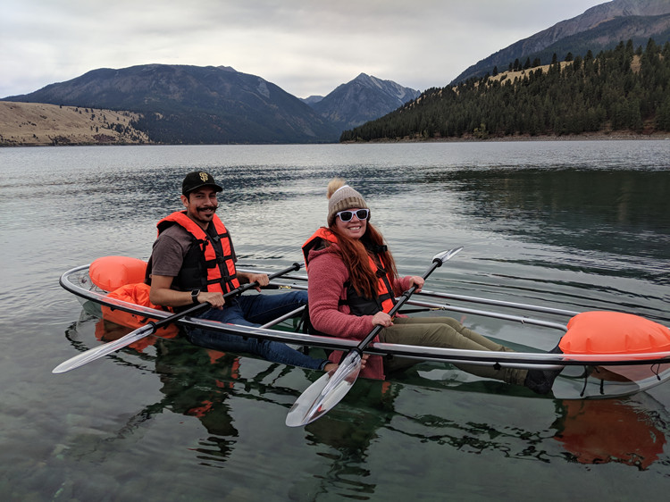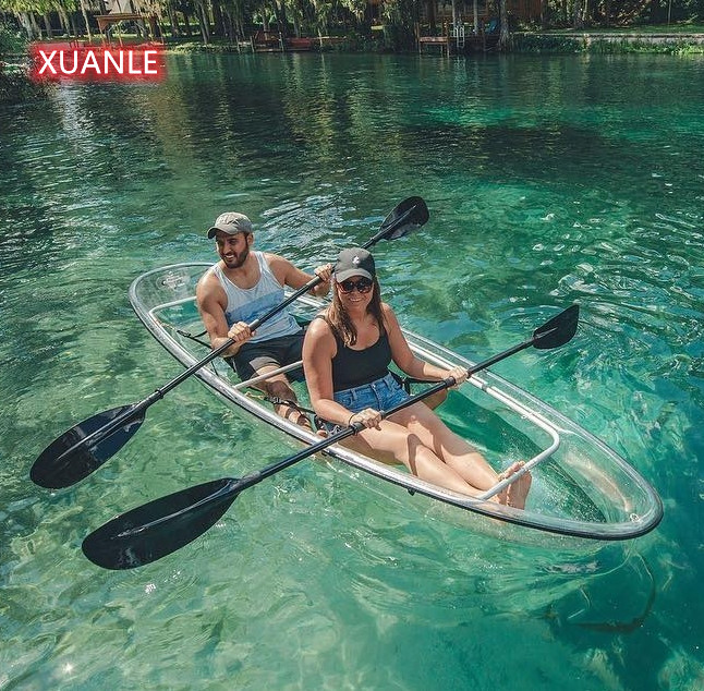 Wholesale High Quality Small Plastic Rowing Boat Transparent Canoe/Kayak Transparent Kayak For 2 Persons