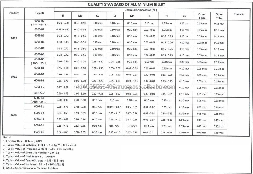 | model: | Billet 6061/6063 | standard: | ANSI H35-1, bs |