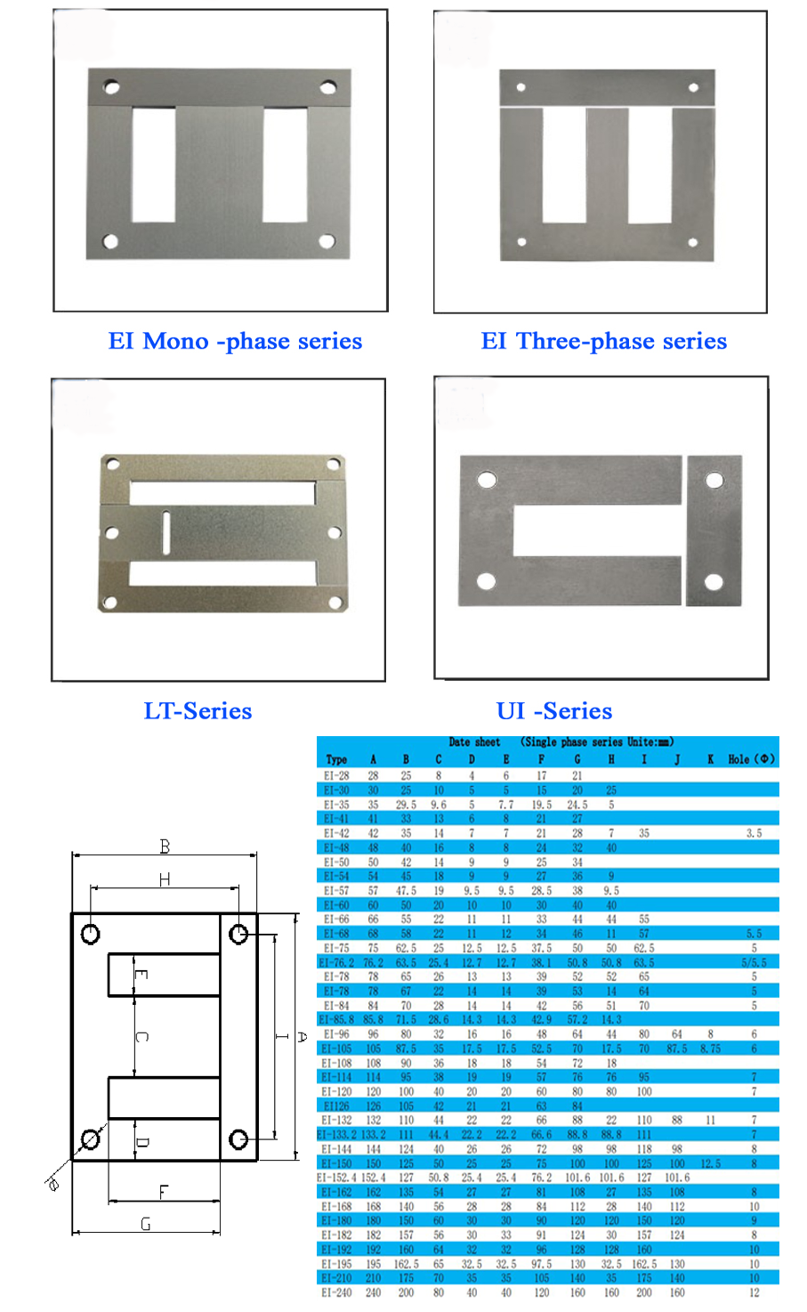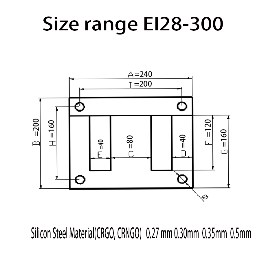| usage | EI laminated core application scope: power transformers, ballasts, UPS, chargers, control transformers, etc. | ||||