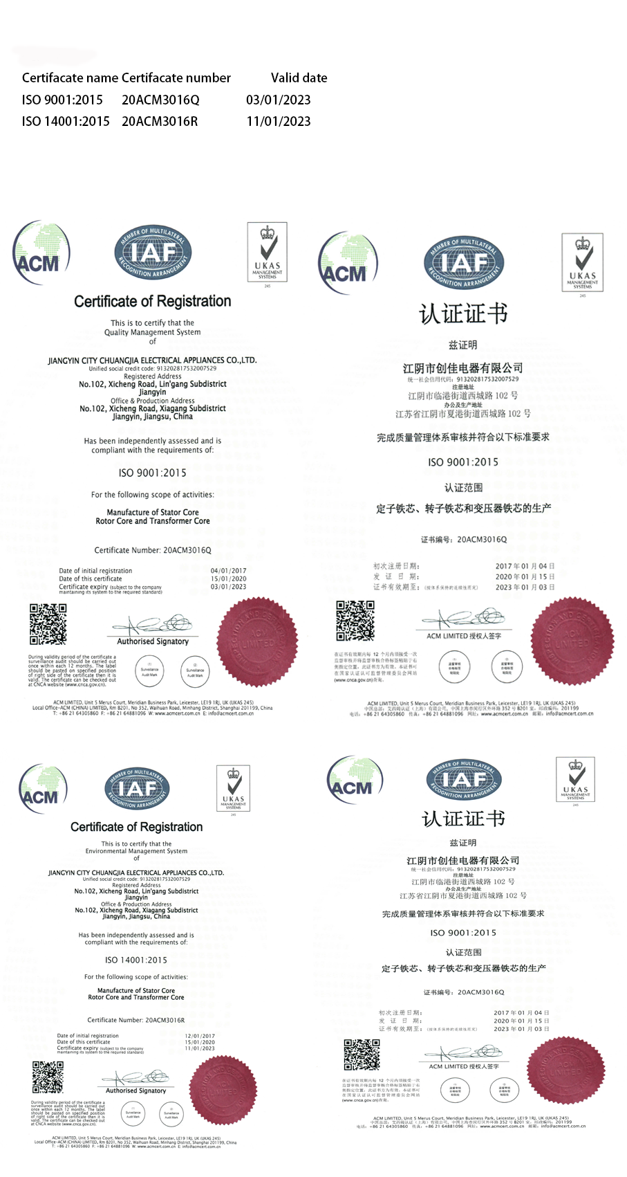 - Jiangyin Chuangjia Electrical Co., Ltd.