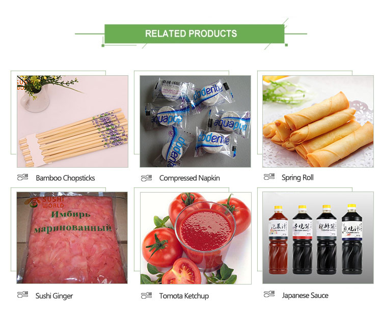 | 4. Sushi Ginger Craft: | Raw materials --- rinsing and desalting --- picking --- rinsing again --- cutting --- rinsing three times --- selection --- draining --- weighing --- bagging --- sealing --- sterilization --- cooking --- wiping --- gold inspection --- storage |