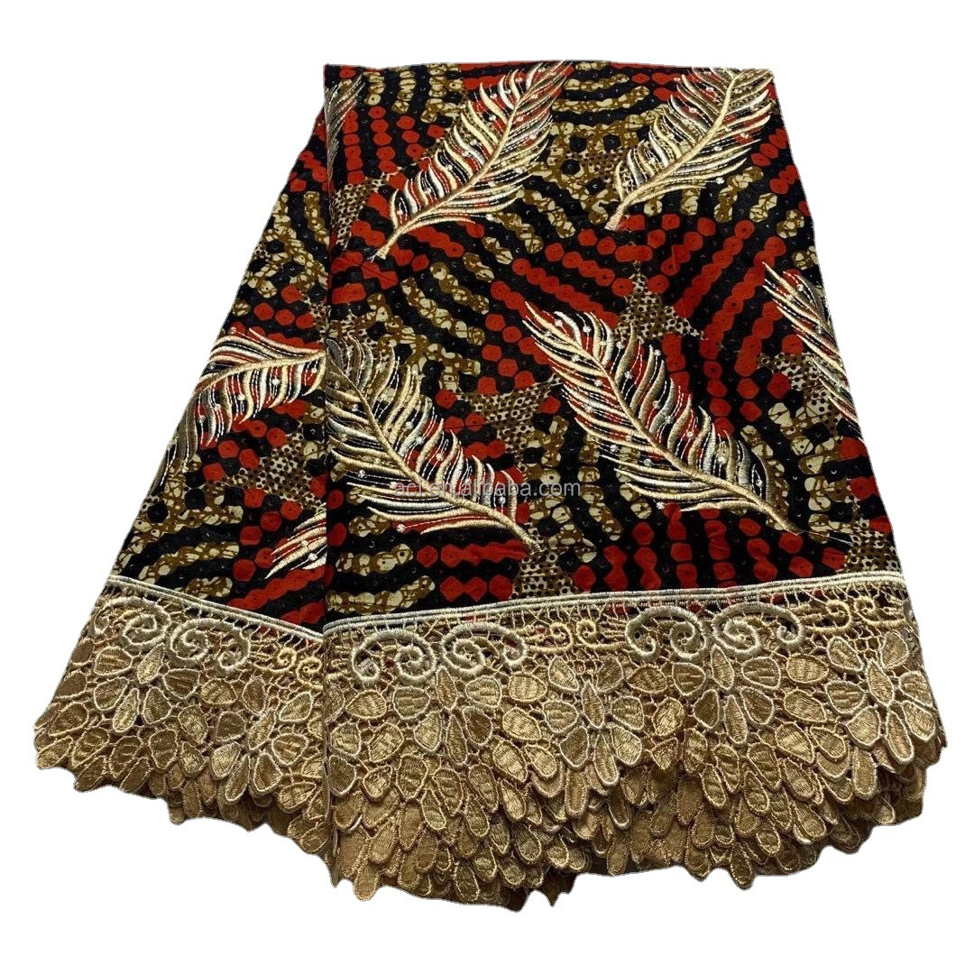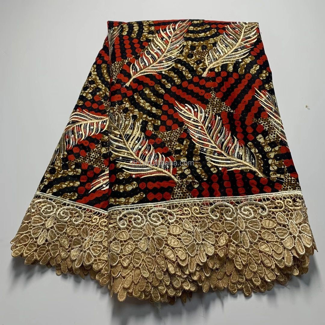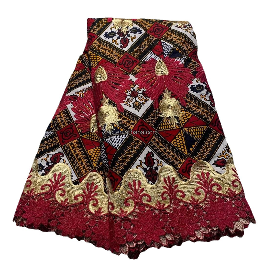 Premium Luxury Cotton Ankara Fabric African Wax Embroidered Lace Fabric Size 6