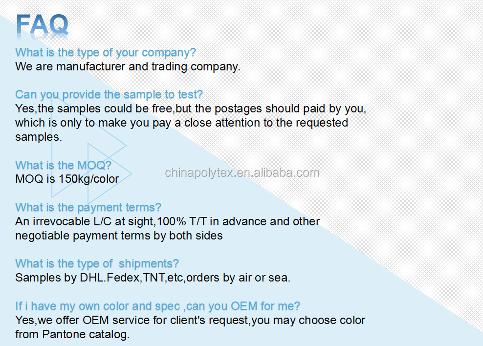 payment terms: L/C, Western Union, D/P, D/A, T/T, MoneyGram color: custom Package: Woven bag. 10-15 kg per pack. Package preview: Fiber Length: 0.3mm-12mm use: to weave Material: Nylon 6 MOQ: 50 kg port: Shanghai place of origin; place of origin: Jiangsu, China Supply capacity: 100 tons per month......